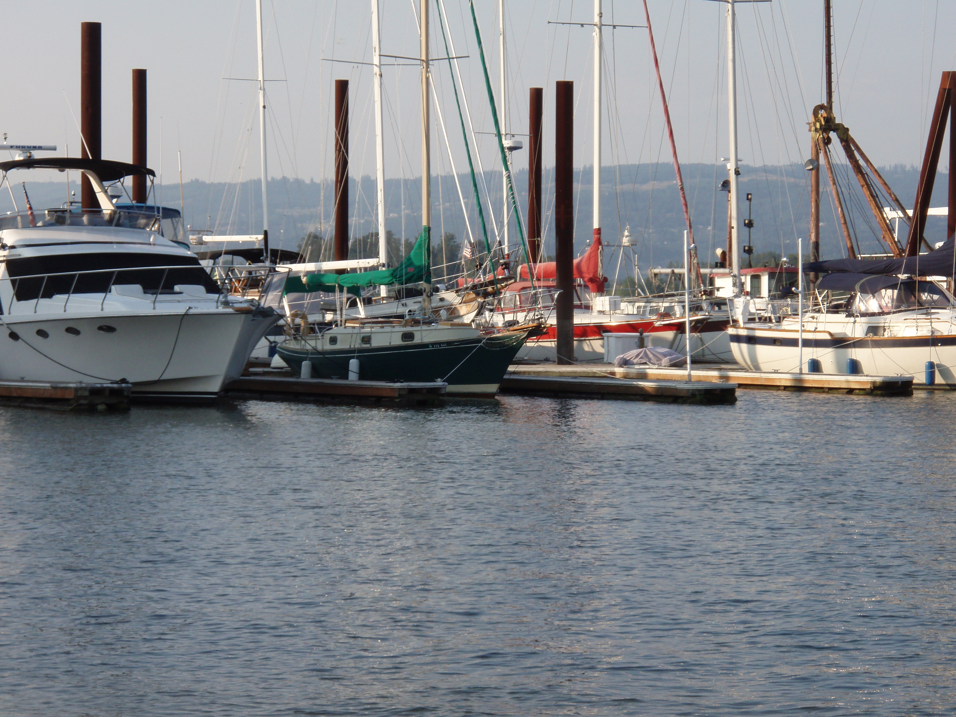 The slip at our previous marina was tricky to get in and out of. There was a strong current perpendicular to the slip with a long dock behind the slip creating a concourse. To get into the slip required motoring upstream just past our slip, then turning across the current with enough speed to maintain forward progress while the current pulled the boat downstream. The amount of speed necessary to overcome the current meant it was difficult to approach the slip no faster than we wanted to hit it 🙂