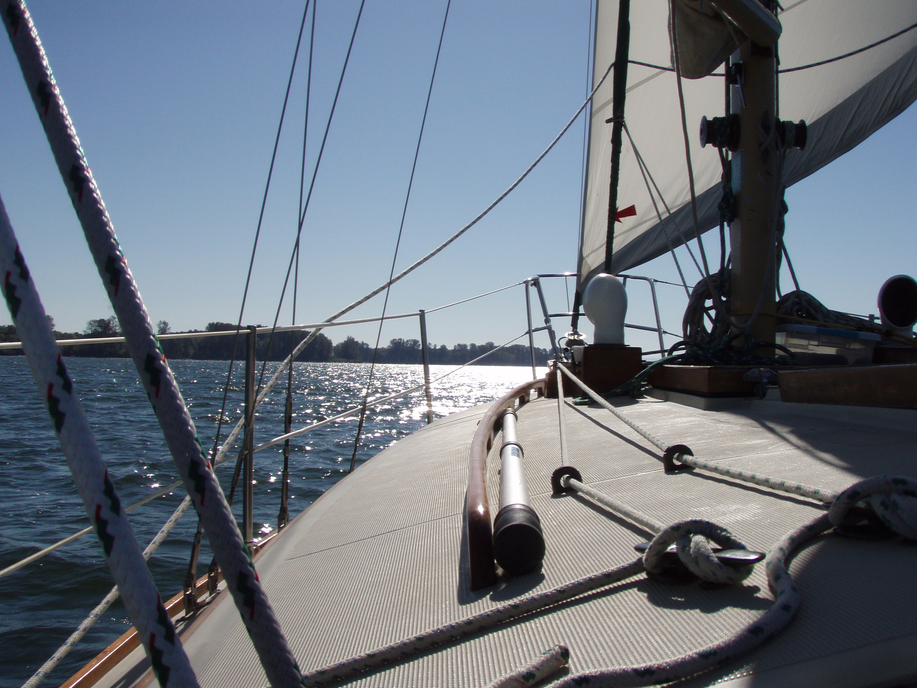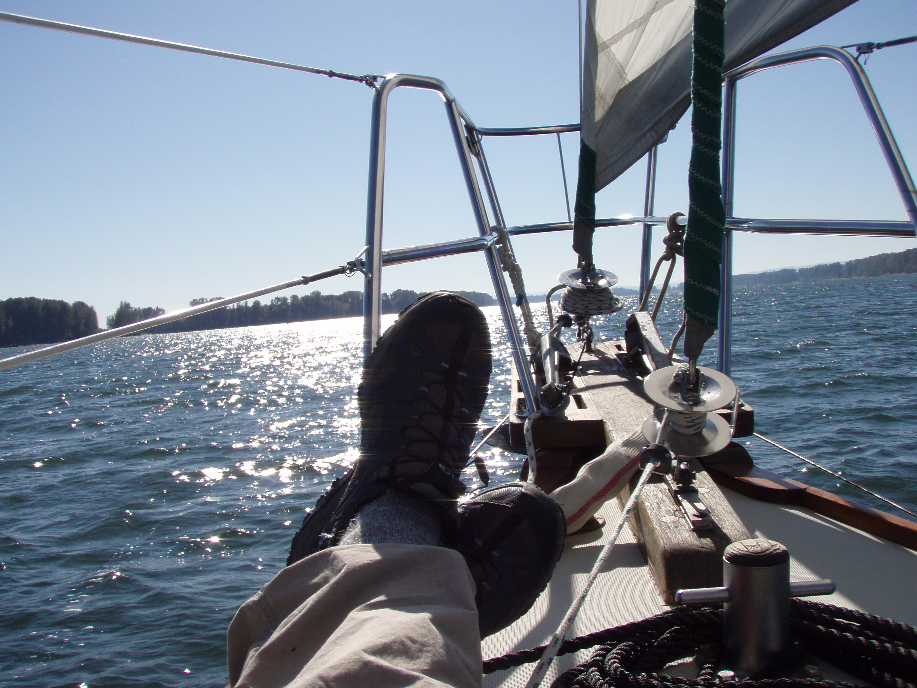 It has been a few weeks since our last sail and it always takes us a while to get reaccustomed to heeling but each time we go out we get a little better about it. We are comfortable at 15 degrees and we’ve spent some time at 20 degrees or a little over and been ok about it. What was cool about today, was that it was a pretty gusty day and it didn’t bother us. Heeling in steady winds is one thing, but heeling in gusty conditions is a different experience. Suddenly going from 15 degrees to 30 degrees can be pretty unsettling, but today it was no big deal. Actually it was pretty fun 🙂