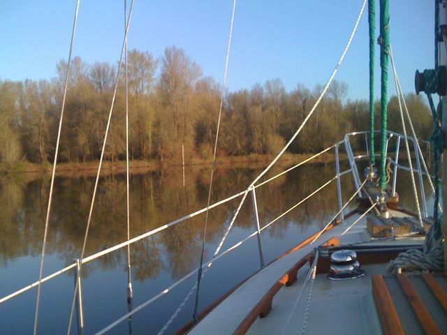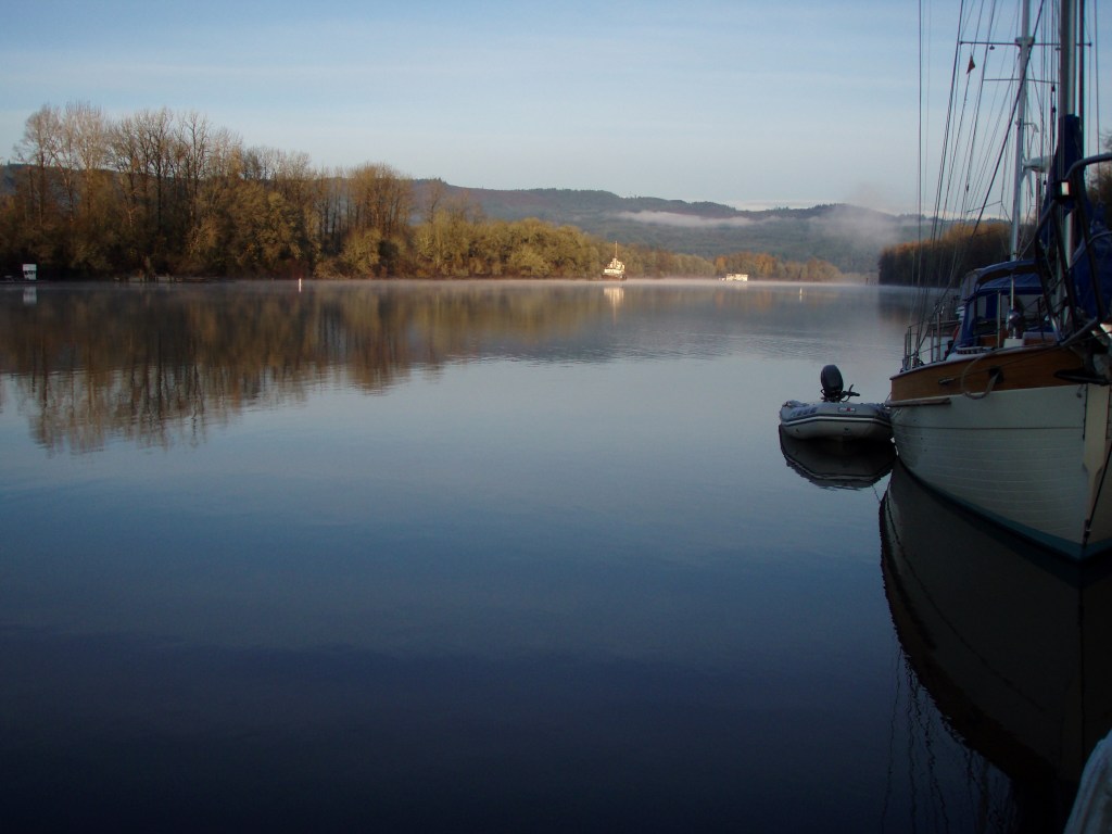 We are anchored out on a beautiful morning. There was frost on the deck this morning but the sun was shining and melted it quickly. We had a nice sail yesterday, the wind was light and a little shifty but it felt warm in the sun (I think the high was only 53 or so) and we had a great time. The days are getting longer so even though the air is still cold it feels like summer is just around the corner, and we can’t wait!