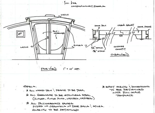 I am writing this on my iPhone so I can’t add captions to photos but I have included a few pics from the summer, including my first trip to the top of the mast, a drawing of the companionway doors we are having made (an anniversary gift to ourselves), and the river shortly after sunset this evening. I keep forgetting to take pictures of our new (to us but actually quite old) drifter under sail. Maybe tomorrow.