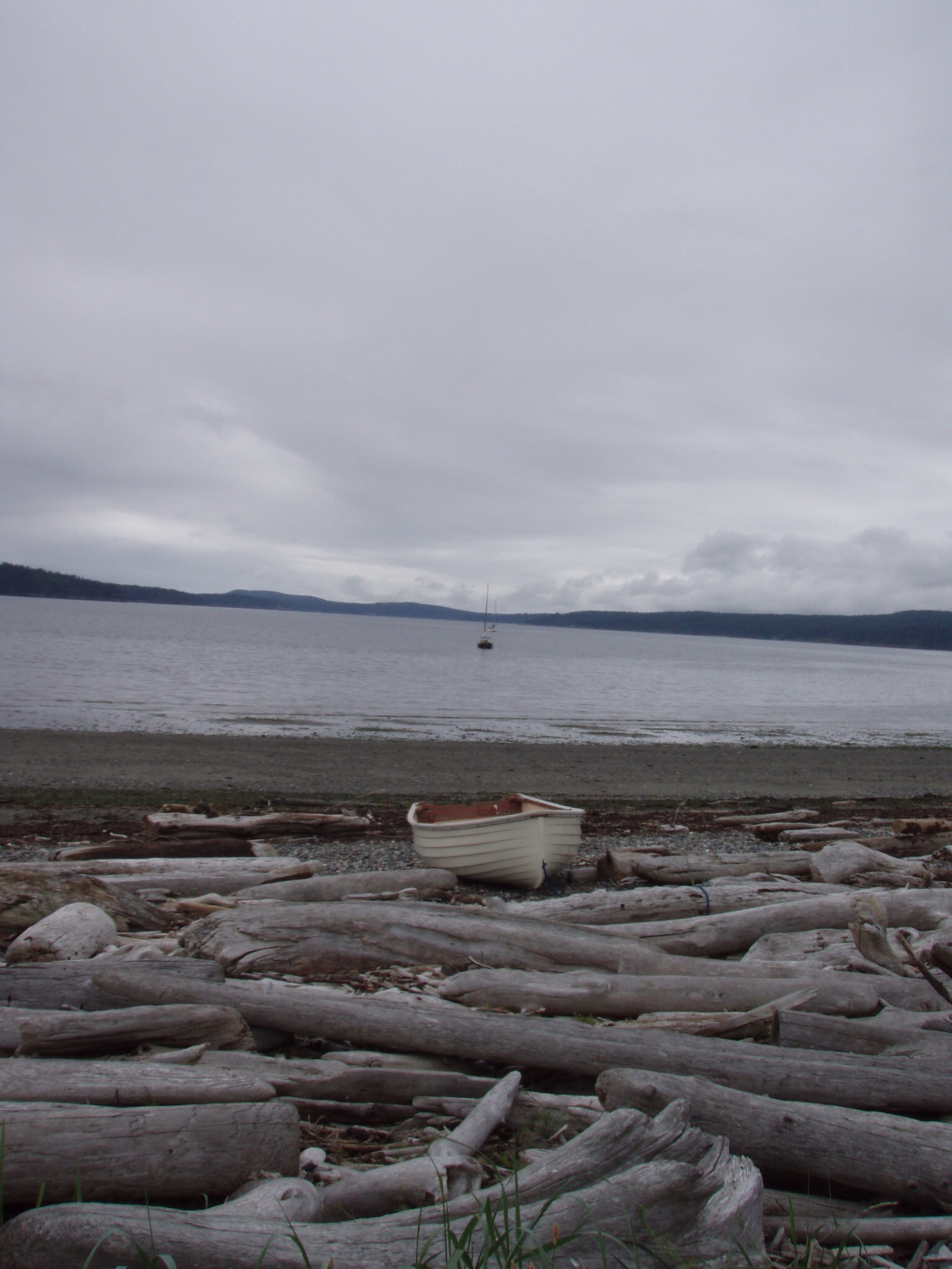 The following morning we pulled up anchor and headed to Spencer Spit (also on Lopez Island). The wind was pretty light but we were able to sail the first couple of hours. We were still learning to use our Cape Horn windvane and spent much of this time playing with it, learning how to adjust it to maintain a course, etc. Eventually the wind died and we motored the last hour to Spencer Spit. We rowed ashore and explored the area, though there wasn’t really much to see. The following day we walked across the island (about 3 miles) to Lopez Village for some supplies. We could have taken the boat to Fisherman Bay, where Lopez Village is located, but it was a little too shallow for our liking. We actually watched from the beach as a sailboat ran aground trying to get in. Besides, we didn’t really need anything and thought a walk across the island would be nice. We were right except there was an area where they were resurfacing the asphalt so that wasn’t much fun to walk through.