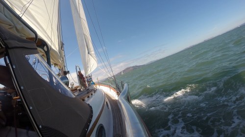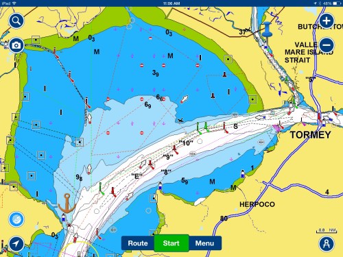We didn’t have a backup destination selected (something we should always have) so I got on my iphone and tried to find anchorages or marinas with guest docks that were deep enough for us. Unfortunately all the marina offices were already closed so I wasn’t able to speak to anyone but I was able to get a slow internet connection. I ended up stumbling across a Latitude 38 article that mentioned that part of Vallejo Marina had been dredged recently. Unfortunately it didn’t say which part. The chart showed the northern half of the marina to be deeper than the southern half. This seemed promising since the guest dock was in the northern half. However, if the chart data was from before the dredging then it seems likely they would have dredged the southern half since it was much shallower. I knew there were a few marinas closer but I couldn’t find much info on them, I was tired, and we hadn’t eaten anything all day, so we settled on Vallejo and enjoyed our moonlit sail across San Pablo Bay. It was chilly so we put up the enclosure panels (we had a full enclosure made a few months after purchasing Casita), and Devon made us some food. As we approached the entrance to the Napa river we started the motor and dropped the sails. The river has really good channel markers but it is still spooky navigating an unknown river in the dark, we were very happy for the light of the moon!
