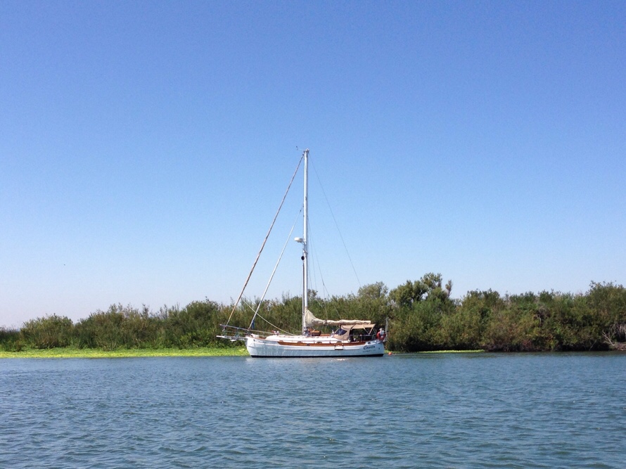 Friday we tidied up the cabin and prepared for guests, my sister Priscilla and her husband Reza were going to come stay a night with us. We took the dinghy to meet them that evening at Sugar Barge, a restaurant / marina / RV park on Bethel Island across Franks Tract from where we were anchored.