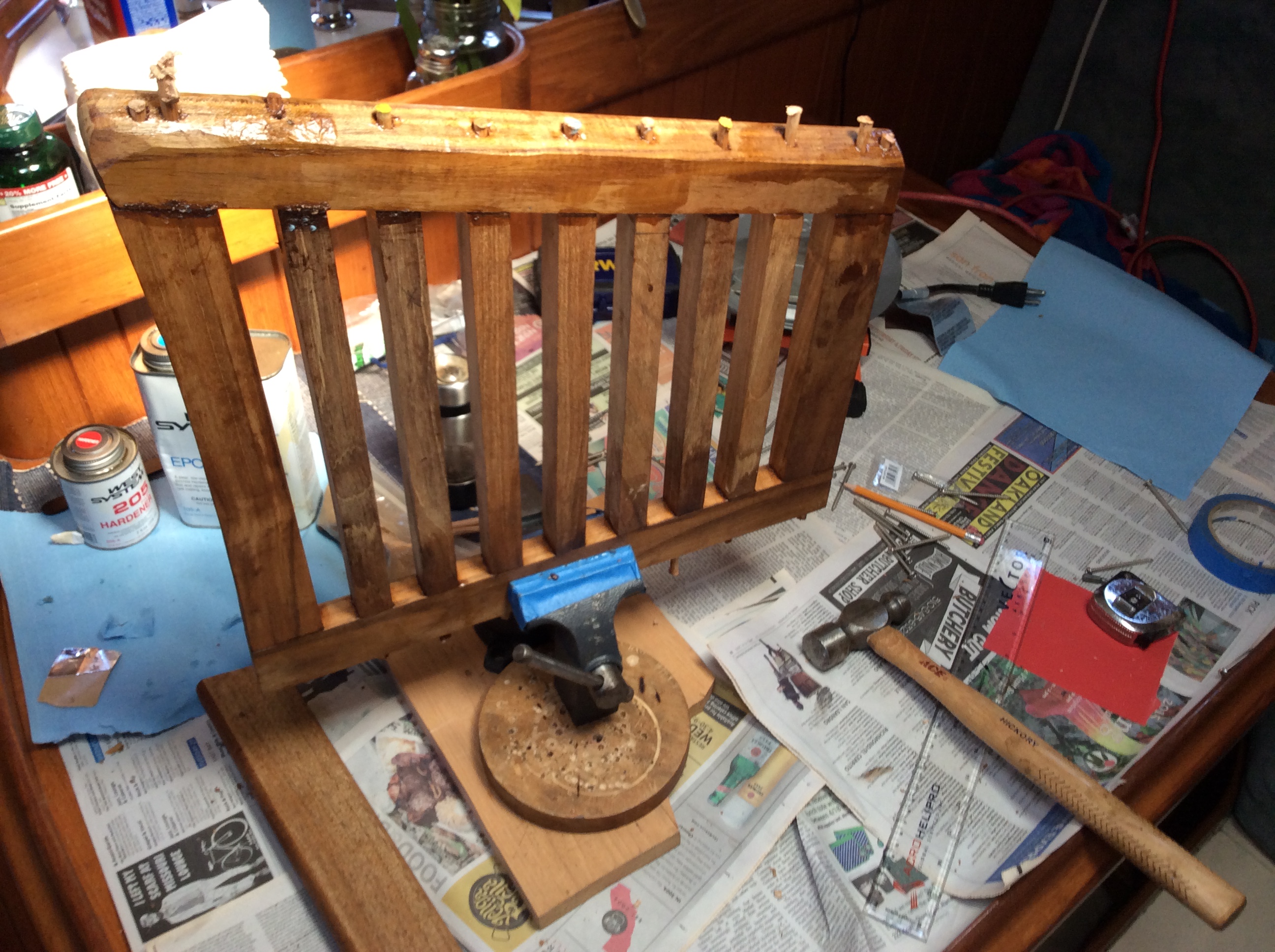 The other big improvement to the fridge is the new shelf we built. As you can see in the top picture, there is a shelf for the back half of the fridge, but the front half was just one big space with no way to organize it. Very frustrating. Our fridge has a top opening and a side opening so if we stacked bins on top of each other to fill the space, the side door wouldn’t be much use. I am aware the side door spills lots of air and isn’t efficient but I really like it. The top cover is the main counter space in the galley so it’s great to be able to get into the fridge even when in the middle of making dinner without moving everything off the top. Plus, the side door allows me to reach the bottom of the fridge without climbing in head first!