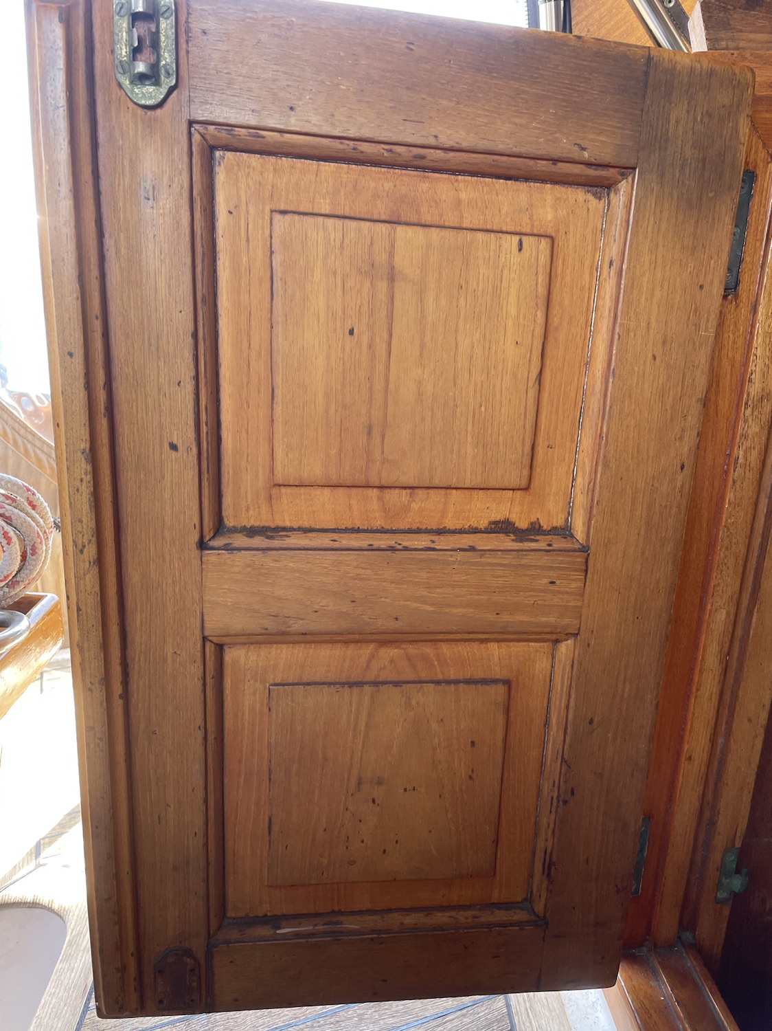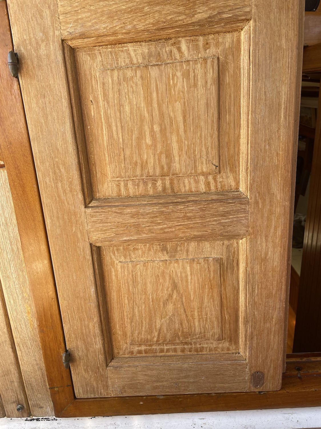 Then comes another round of sanding before applying Cetol (technically not varnish, but the same idea). I will also be replacing the latches for the doors and the slider, the old ones were pretty low quality.