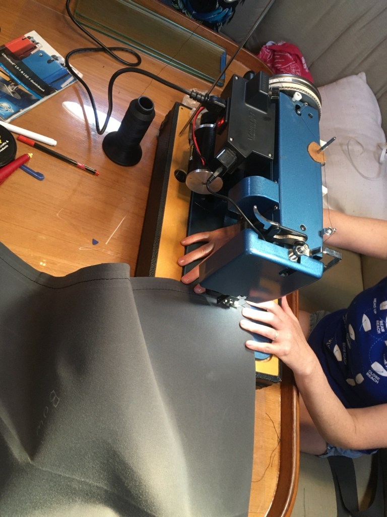 We usually use Sunbrella canvas for sun covers but this time we went with Sattler canvas. According to Sailrite, Sattler has been around for a long time in Europe but has only recently entered the US market. Supposedly it is comparable to Sunbrella (they are both solution dyed acrylic) but at a lower price. Time will tell how well it holds up to the sun, but so far it does seem to be very similar to Sunbrella.
