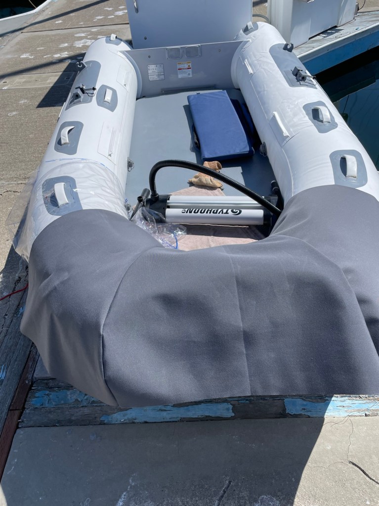 We bought a new dinghy and I’m in the process of making chaps for it. The new dinghy is an Achilles LSI-310, it is just over 10 feet in length and it has a high pressure air floor so it can be deflated and stored relatively compactly on deck. This is actually the first dinghy we have purchased new, all of our previous ones were bought on craigslist. Our last dinghy was also an Achilles air floor but it was a little smaller and a lot older.