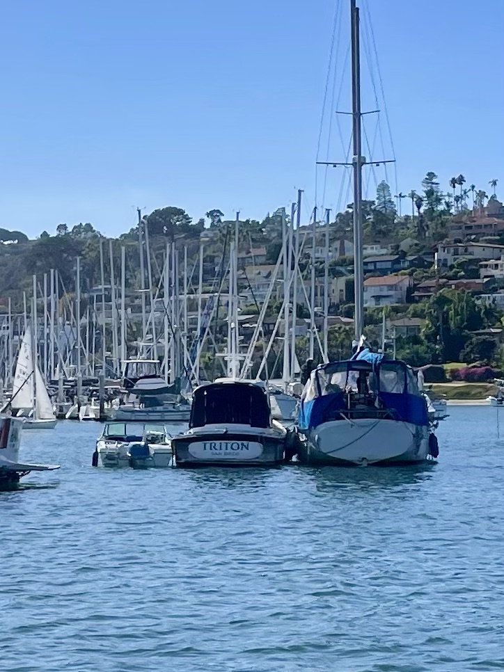 From Avalon we went directly to San Diego and tied up at the municipal guest dock where we spent 2 days. In addition to the municipal dock (not free) the port of San Diego also manages a few anchorages which are free, the anchorages and the guest dock all require reservations and all have various time restrictions. The Baja Haha fleet was in town so space at the dock and in the anchorages was pretty limited so we bounced from place to place taking what was available. While in San Diego we did a lot of walking, it was about 1.5 miles from the dock to the area with the marine supply stores and we did that walk several times, plus walked to some more outlying areas for groceries. We bought several things for the boat including some line (rope), shorter battens for the mainsail, and Starlink (satellite communication device). We also bought a few things on Amazon and had them delivered to Whole Foods, which was not within a reasonable walking distance so we took a Lyft both ways for that.