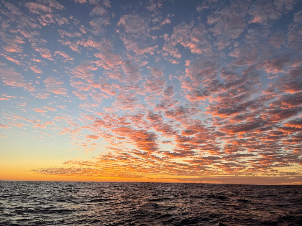 The rest of the trip was less exciting, we had pretty good winds most of the way, though it was pretty rolly at times. Here is a shot of the sun setting on the 2nd night (last night).