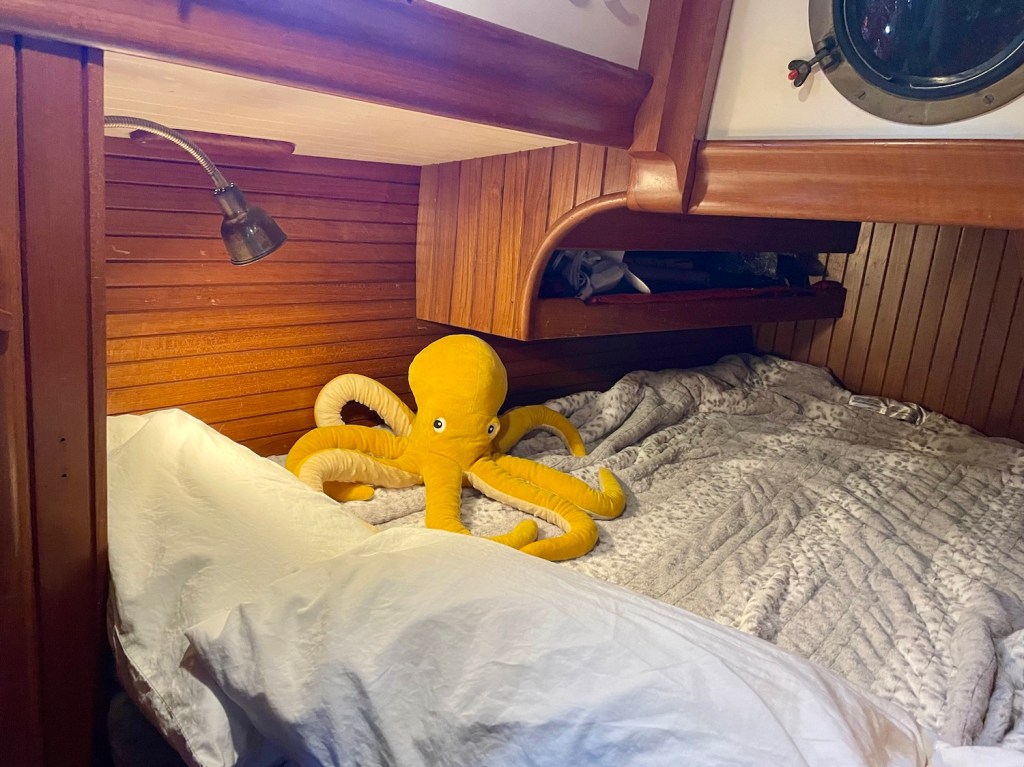 My sister Cynthia was flying down the day after TG so it was nice to have a chance to get the boat tidied up for her visit. Maybe “tidied up” isn’t really the right way to put it. Having been underway almost constantly for over a month in a variety of conditions, the boat was more in “passage making” mode than “relaxing at anchor” mode. We restowed lots of items that we didn’t anticipate needing for island hopping, and we excavated the aft cabin so Cynthia would have a place to sleep!