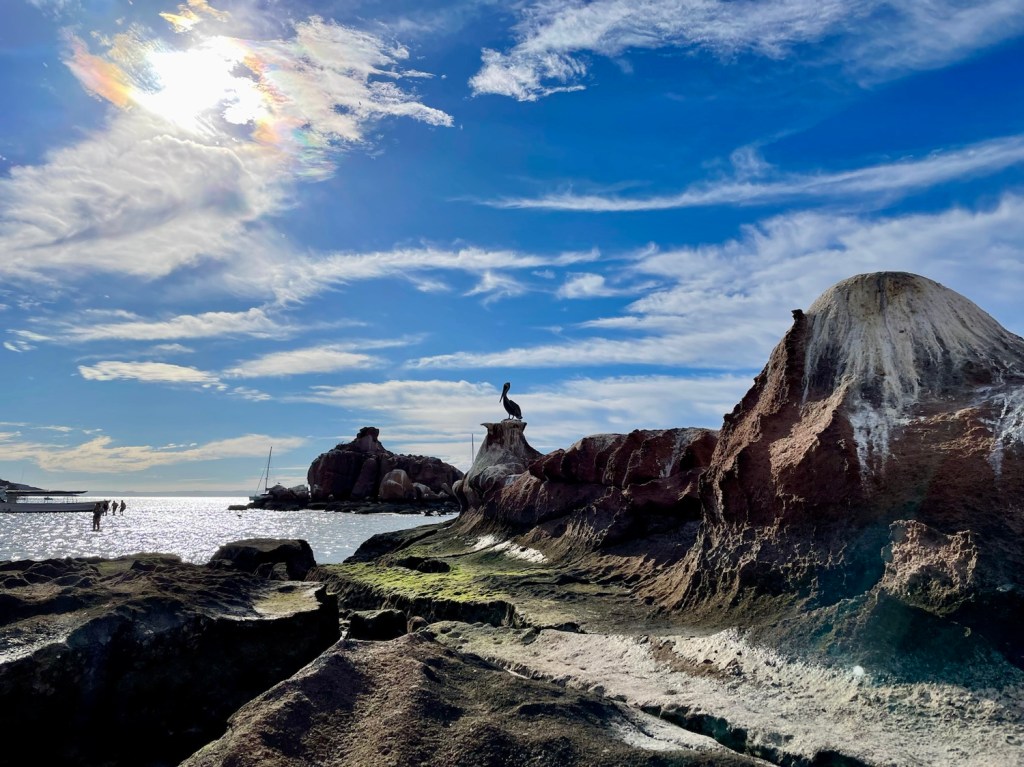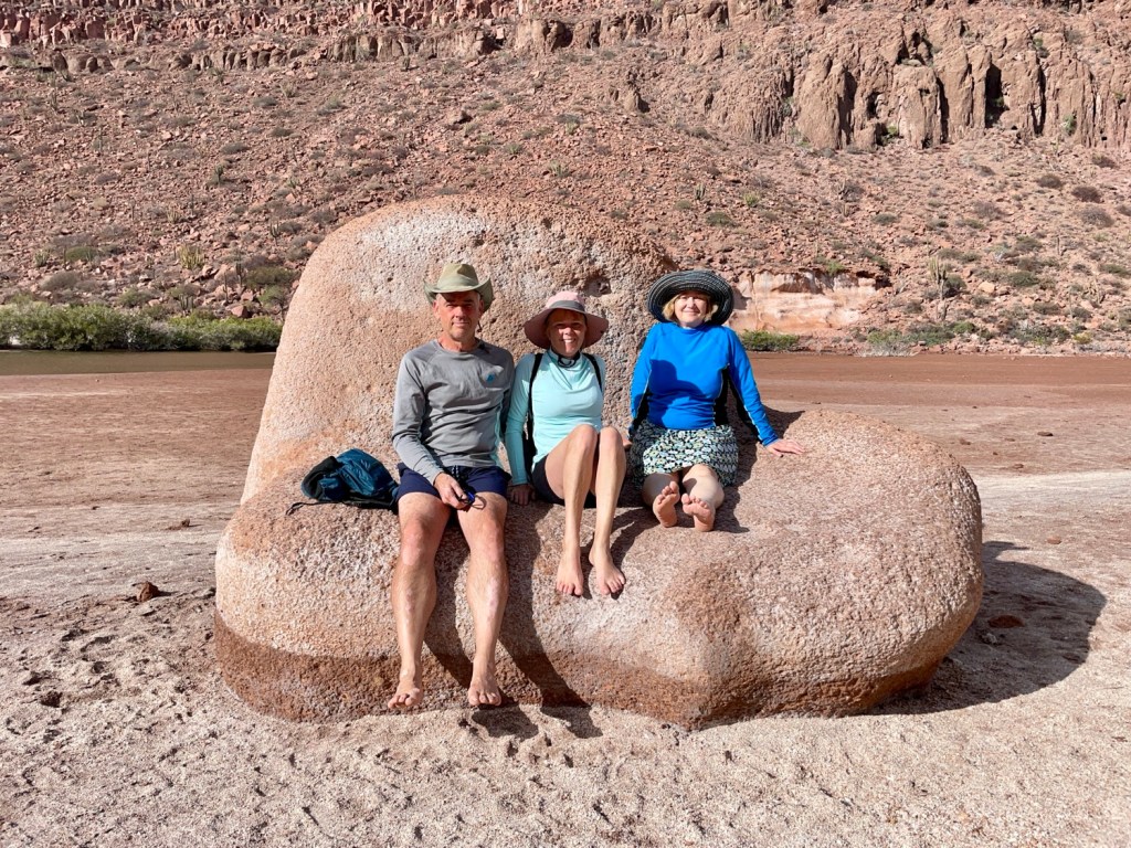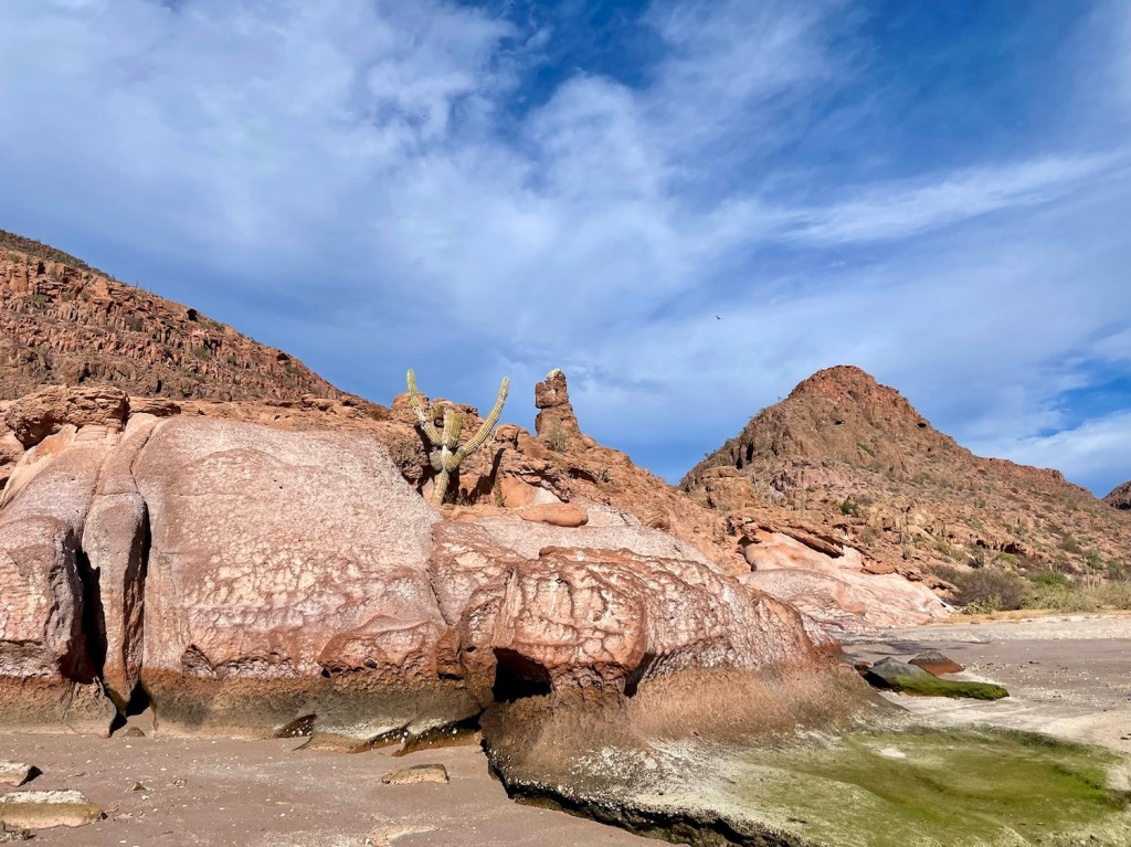 After 3 nights at the marina, and with Cynthia on board, we made the short trip back to Balandra. It was windier than our first visit so a bit rolly and we deployed our rocker stoppers again. Devon and I paddle boarded to shore and went for a walk on the gorgeous beach. While we were wandering down the beach we heard a strange sound, somewhere between a “pow” and a “whoomp”. We both commented on it but couldn’t figure out what would have caused it, until we got back to our paddle boards and realized Devon’s board had exploded! About 18 inches of one of the glue joints had failed, thank goodness it didn’t happen out on the water! I ferried us and the deflated board back on my board, maneuvering was difficult and the wind was blowing pretty strongly off the beach so we almost blew passed Casita and out into the bay.