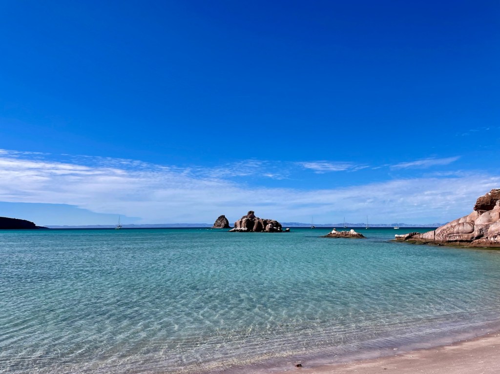 The following morning we weighed anchor and moved to Ensenada del Candelero on Isla Espiritu Santo (the closest island). We saw Heidi and Aaron on their boat Sonho going the opposite direction so we stopped and chatted with them for a few minutes.