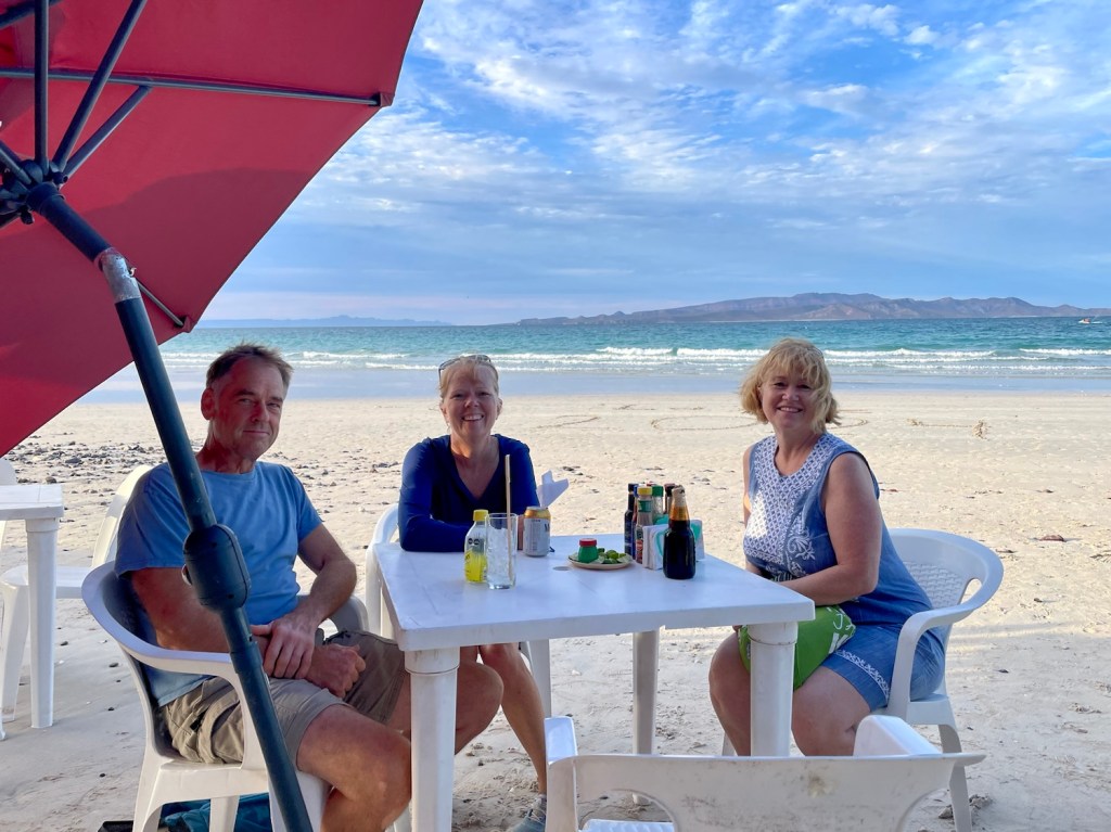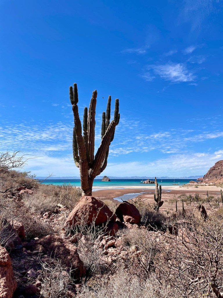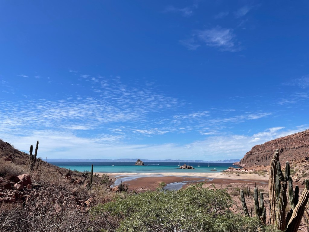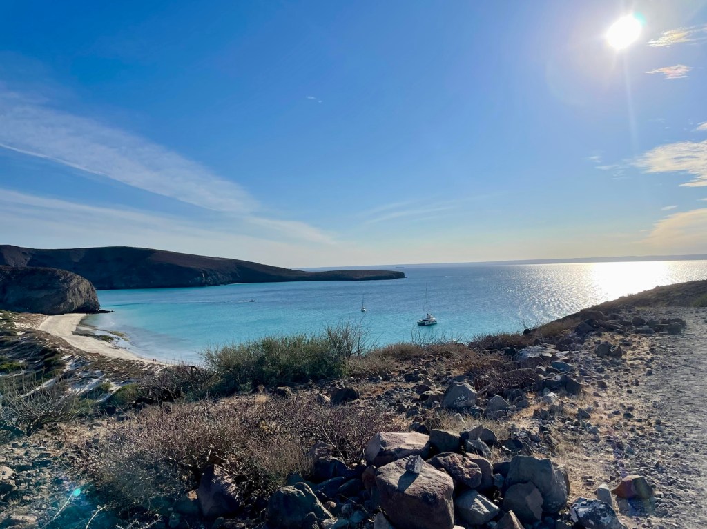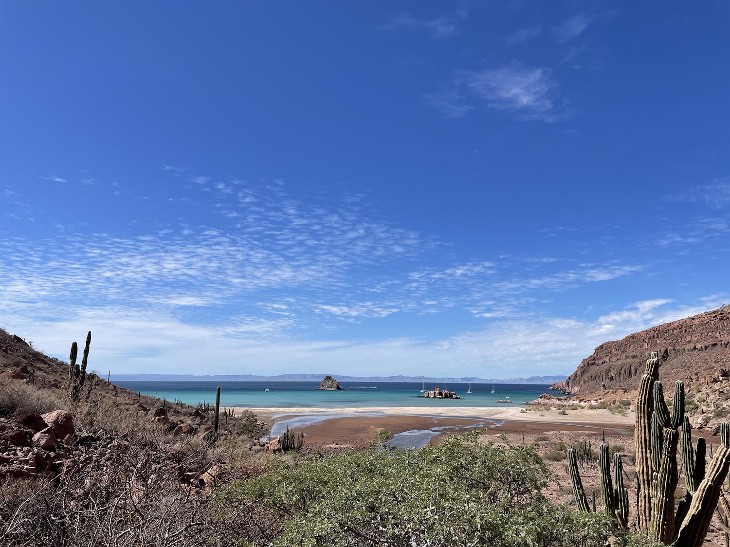 From Candelero we went back to Balandra where we all went ashore and hiked over the hill to Playa Tecolote where there are a few beachside restaurants. We had a nice dinner of fish tacos on the beach, then hiked back over the hill and made it with just enough light to not get too lost finding our way back down to the beach!