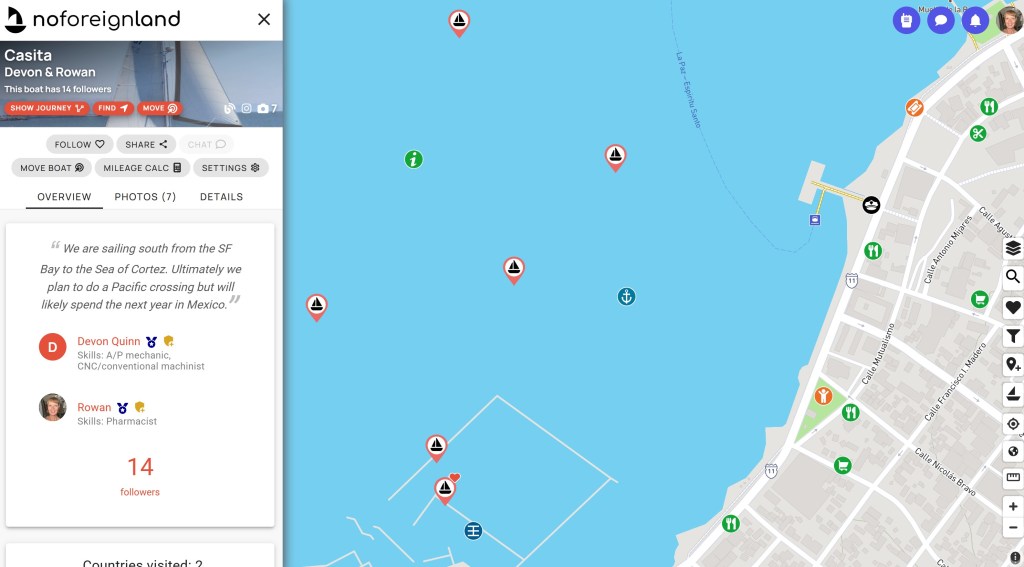 We started our boating life in the Portland Oregon area with an Ericson Independence 31 before moving to the SF Bay area. In 2013 we purchased and moved aboard Casita, our Hans Christian 33. In October 2024 we finally cast off the dock lines and headed south. We are currently cruising Mexico with plans to do a Pacific crossing.