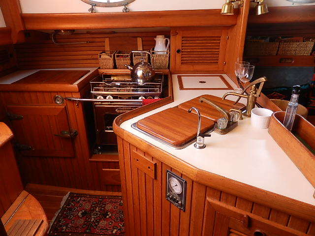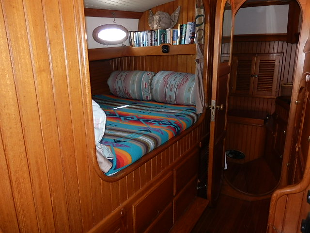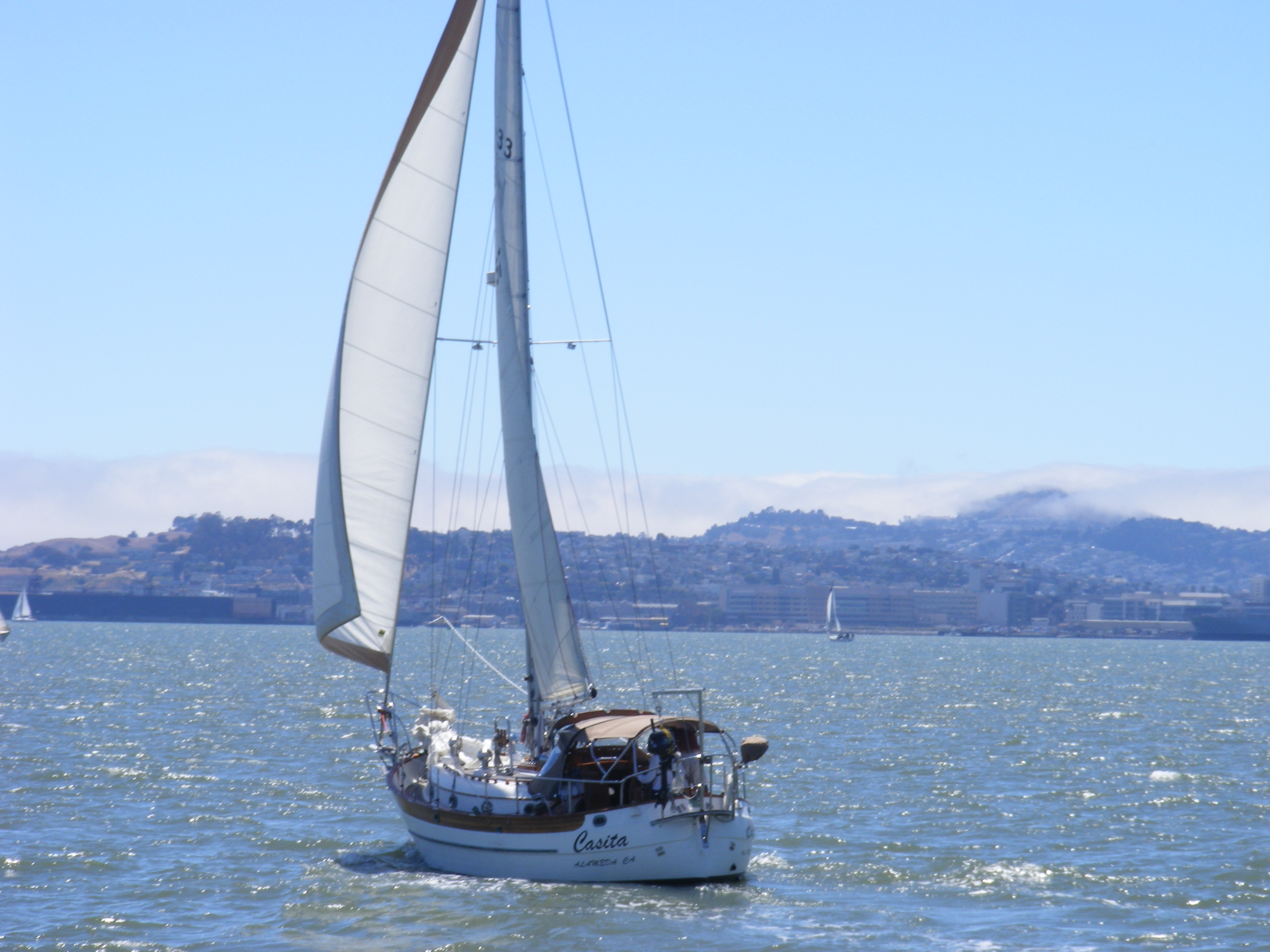 Casita is a Hans Christian 33 built in Taiwan in 1984. She is an aft cockpit, cutter rigged fiberglass boat with a double pullman berth, small aft cabin, and a single head. She officially displaces 18,500 pounds but probably closer to 25,000 loaded for cruising. Length on deck is 32’9″ but with bowsprit and pushpit length overall is 41′ while length of the water line is 29’2″. Max beam is 11’8″ and official draft is 5’6″ but we always assume at least 6′ with all our stuff onboard.